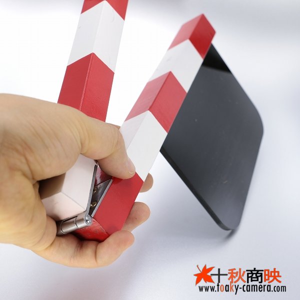 片手日本式 映画撮影 自主制作用 カチンコ 赤白柄 オリジナル黒 アクリル製